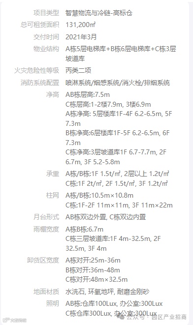 该项目一直作为中高端鞋服类仓库/厂房,库内拥有多种特殊设备可使用,其中包含钢平台,垂直升降机,螺旋升降机,大型挂衣设备等。该项目地理位置优越,距离15号线元江路地铁站2号口600米左右,距离虹梅,嘉闵高架以及沪金高速入口等均在5公里以内。除鞋服仓储外,该项目还适用于生物医药研发,小型加工以及美妆,电商,电子产品等仓储项目。