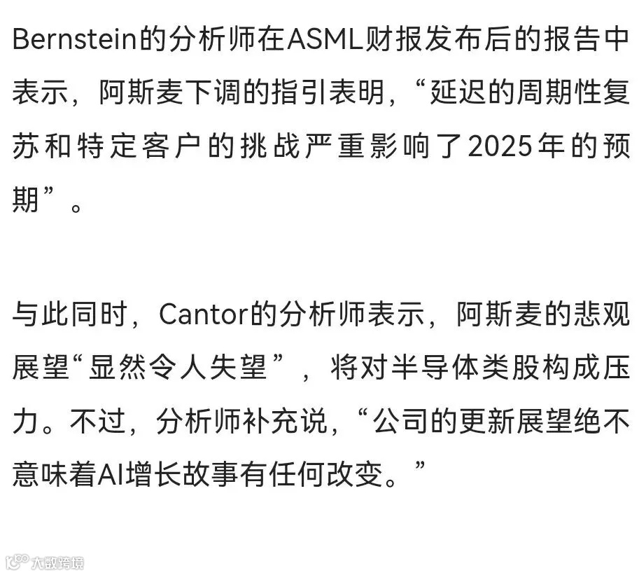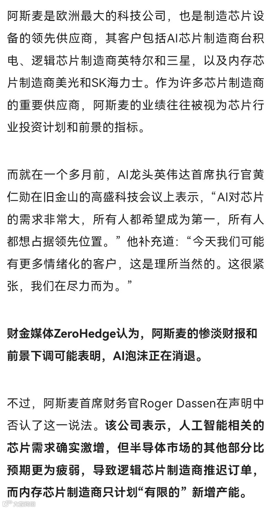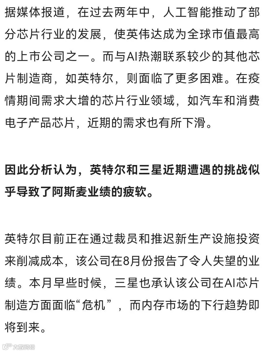 AI泡沫要破?ASML:AI芯片需求仍大 但其他部分出问题