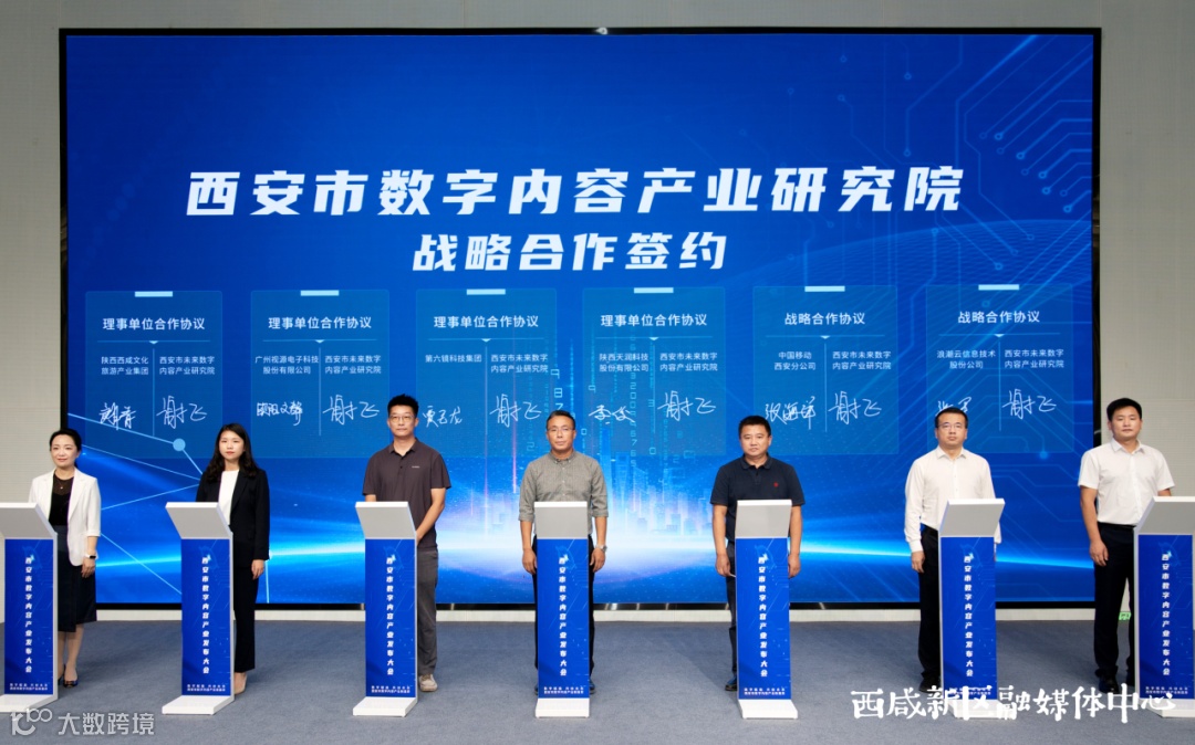 在签约环节,西安市未来数字内容产业研究院与陕西西咸文旅集团等四家企业签署理事单位协议;与中国移动西安分公司等两家企业签署战略合作协议;西安市数字内容产业基地与十里沣河影视传媒有限公司等五家企业签署入驻协议;研究院高质量就业中心与西安理工大学等十五所高校院所签署合作协议。