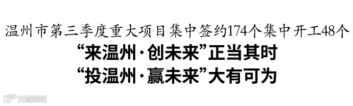 温州市2024年第三季度重大项目集中签约开工活动9月25日下午举行,协议总投资988亿元的174个项目集中签约,总投资727亿元的48个重大项目集中开工,持续掀起“大抓招商、大抓项目”热潮,为温州提速打造“全省第三极”注入强劲动能。