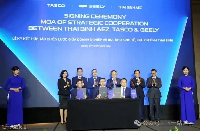9月23日,吉利汽车集团与越南Tasco股份公司与签署了在越南组装和销售汽车的合资合同,并与太平省经济区管理委员会签署了战略合作协议备忘录。