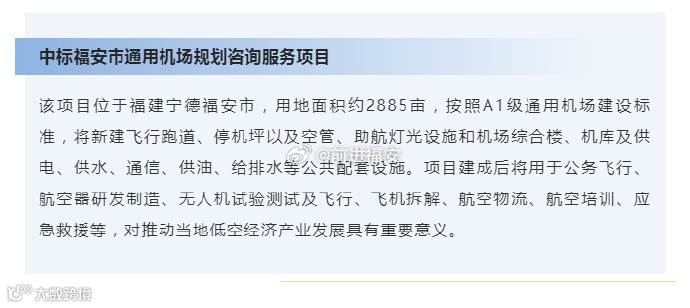 微博@前进福安消息:福安市通用机场规划咨询服务项目由机械工业第六设计研究院有限公司(简称中机六院)中标。