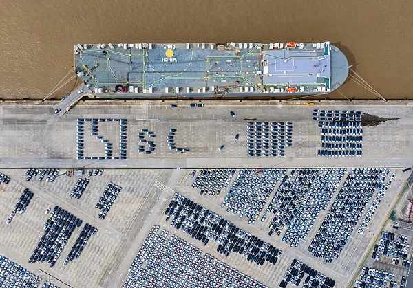 2024年7月2日,中国制造的电动汽车停靠在广州南沙汽车码头进行装船作业。 视觉中国