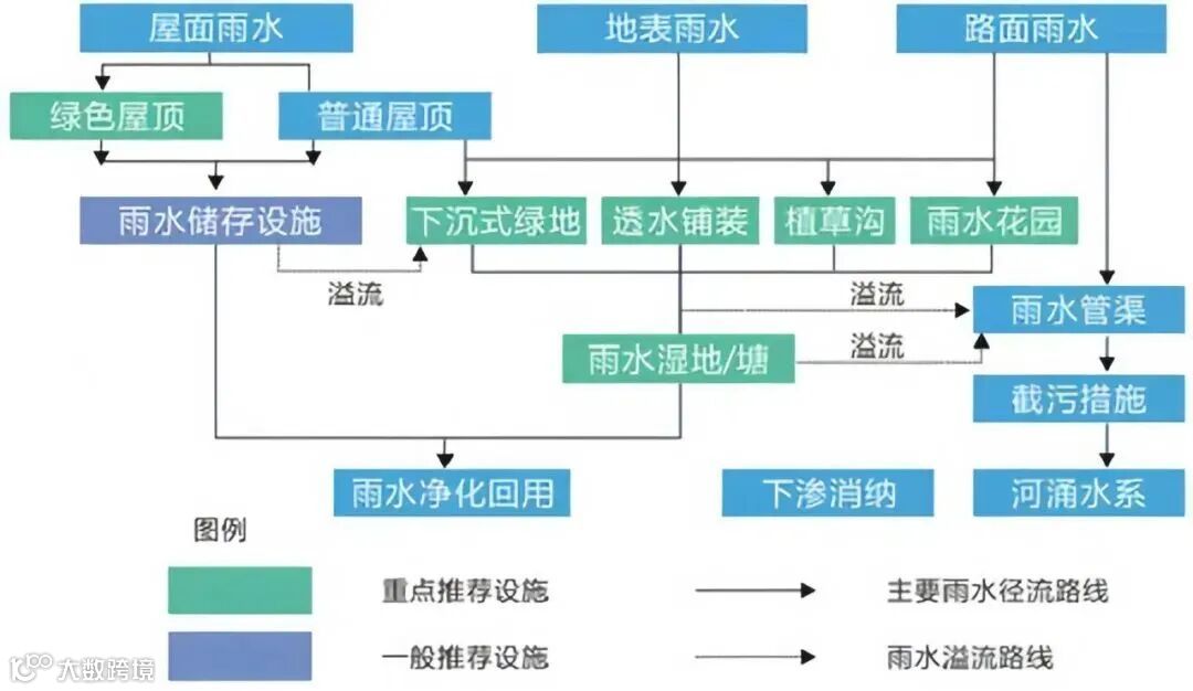 经过净化后的雨水被收集到雨水调蓄池,超过蓄水标准的雨水被排放到城市雨水管网,可以减缓强降雨对市政管网和整个片区的排水压力。