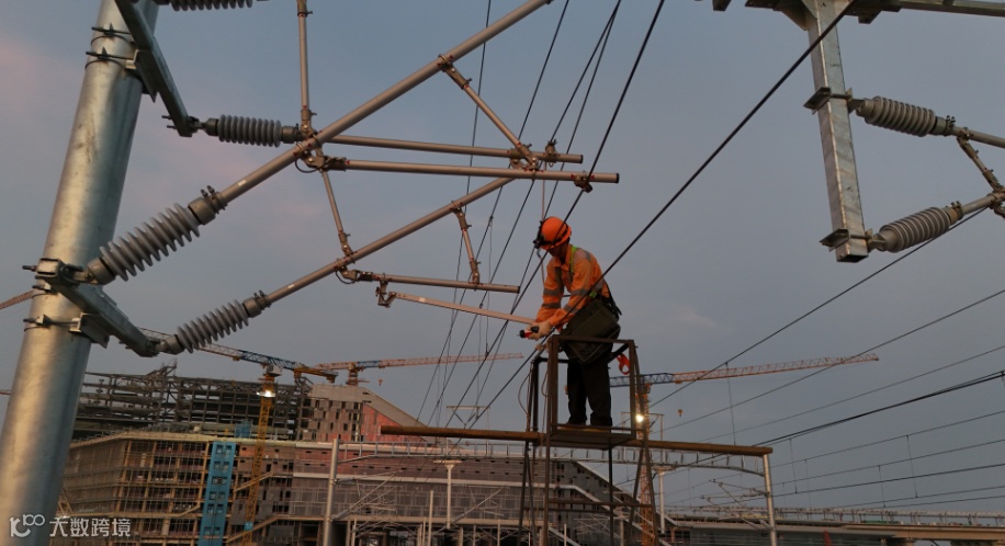 杭州供电段技术人员对苏州南站接触网设备进行检查(摄影:甘长巍)