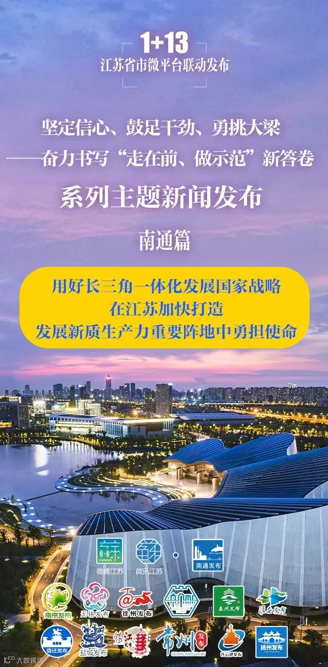 各位媒体朋友,今年是南通获批全国首批沿海开放城市40周年,站在新的起点上,我们将在中央和省委领导下,进一步全面深化改革、扩大开放,用好长三角一体化发展国家战略,聚力做大经济总量、调优产业结构、增强创新活力、提升城市能级,为全省“走在前、做示范”贡献南通力量。