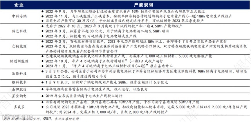 各企业钠离子电池产能规划情况