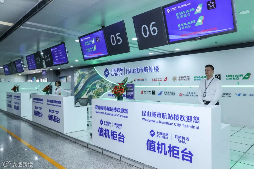 上海机场昆山城市航站楼位于昆山开发区国际会展中心,是国内首个跨省异地城市航站楼,自2011年成立以来,累计保障旅客出行超100万人次,其中服务台胞超10万人次,成为全国服务台胞次数最多的异地城市航站楼,也成为昆山融入国内国际双循环、链接全球资源的重要窗口。