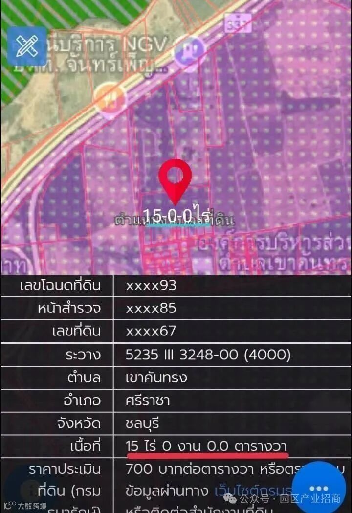 泰国春武里府 |【紫色区】Sriracha县 15莱土地出售