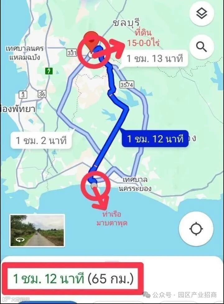 距离Map Ta Phut 码头 65 公里