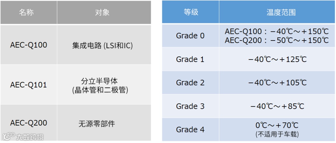 图4. AEC规定的可靠性试验标准和等级