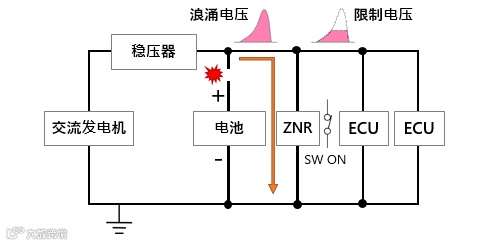 图3. 负载突降现象和保护元件ZNR的作用