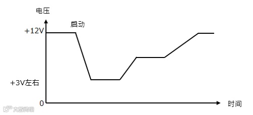 系在电池或发动机处于低温状态下,驱动消耗大量电流的启动电机时,+12V系统的电压暂时降至+3V左右的一种现象(图2)。