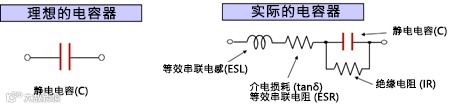 图3. 理想的电容器和实际的电容器的等效电路