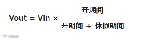 这里,将ON期间÷(ON期间+OFF期间)的项称作工作周期或占空比。譬如,输入电压Vin为12V,要得到6V的输出电压Vout, 工作周期为6÷12=0.5,因而只要将开关元件SW1在50%的期间控制为ON就可以了。