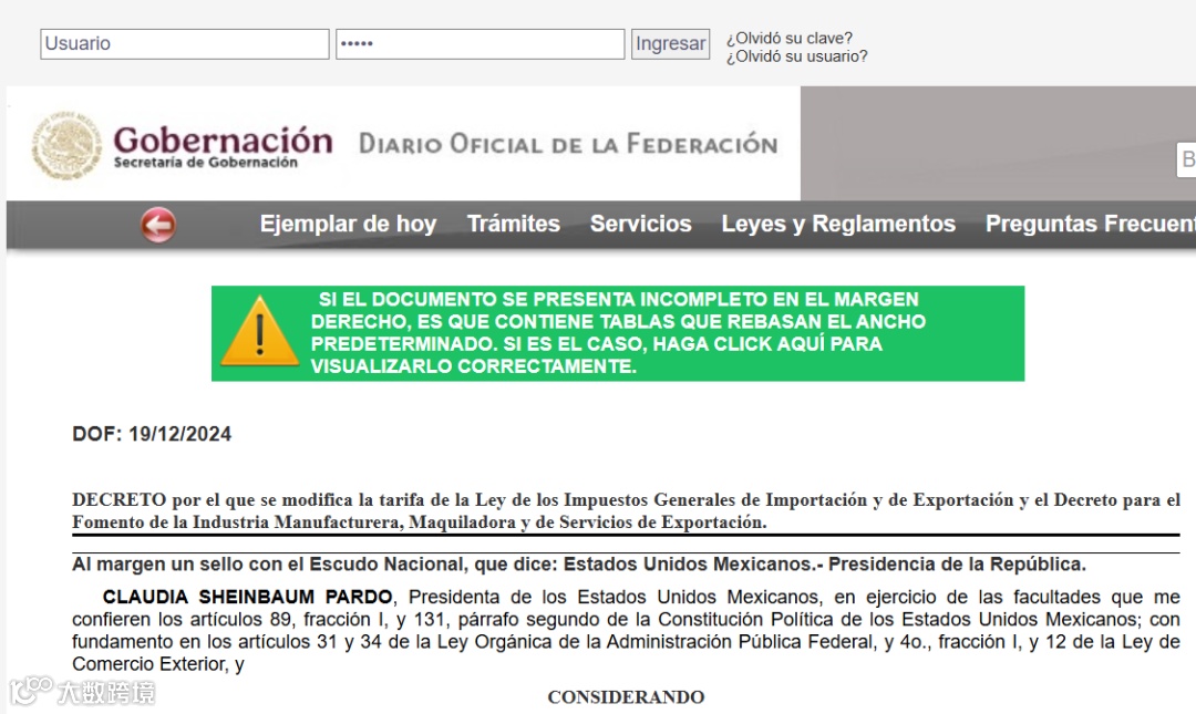 12月19日,墨西哥总统克劳迪娅·辛鲍姆与经济部长马塞洛·埃布拉德签署了一项法令,该法令对138个关税细类的纺织品及成衣产品征收35%的进口关税,并制定纺织品禁止进口清单,以保护墨西哥纺织/服装行业。