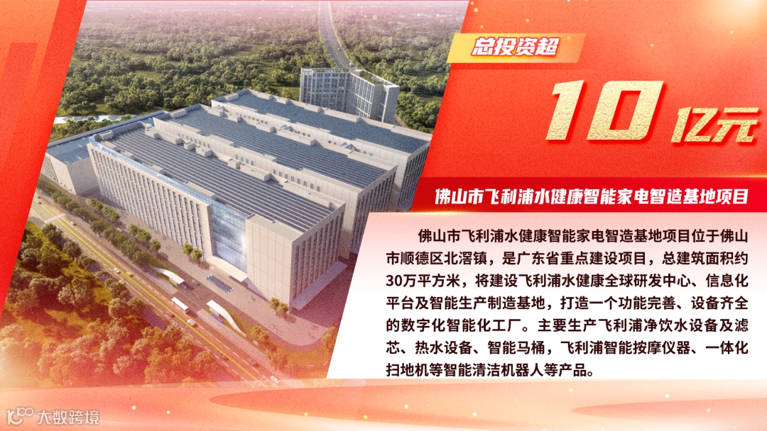 佛山市飞利浦水健康智能家电智造基地项目位于顺德区北滘镇,是广东省重点建设项目。此前,广东德尔玛科技股份有限公司全资收购了全球500强飞利浦旗下的全球水健康业务,2022年,投资超10亿元的飞利浦水健康智能家电智造基地在顺德北滘破土动工。