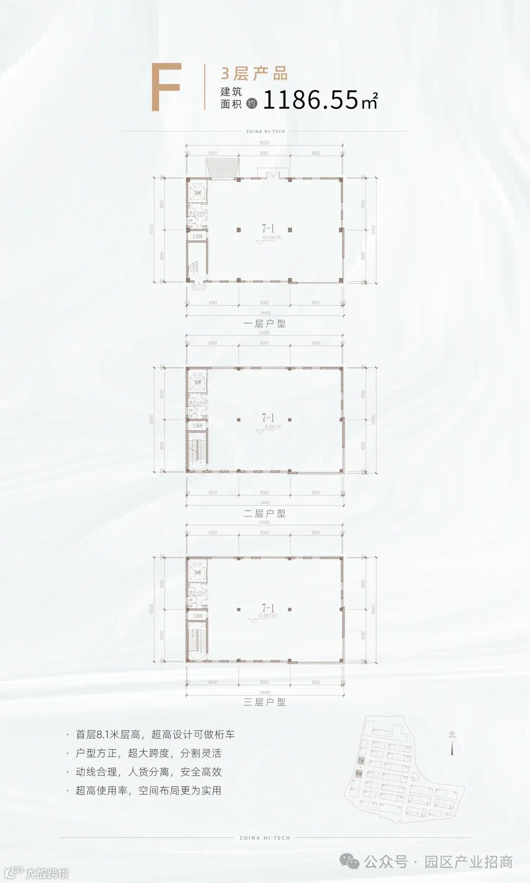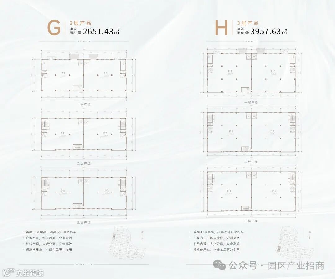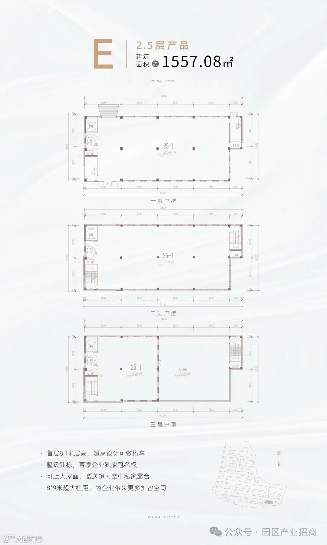 【层高】一楼8.1米、二楼4.2米、三楼3.9米