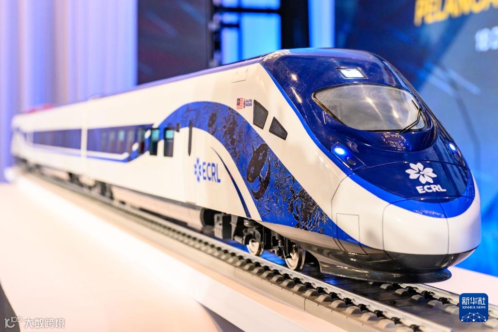 ▲ 这是12月18日在马来西亚普特拉贾亚拍摄的新的动车组模型。新华社发(张纹综摄)