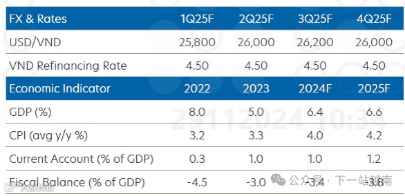 越南国会设定2024年GDP增长6.5-7.0%和2025年6.5-7.0%的目标,同时“努力”达到7.0-7.5%。然而,随着美国准备进入特朗普2.0,全球贸易紧张局势和风险的可能性可能很快就会显现。
