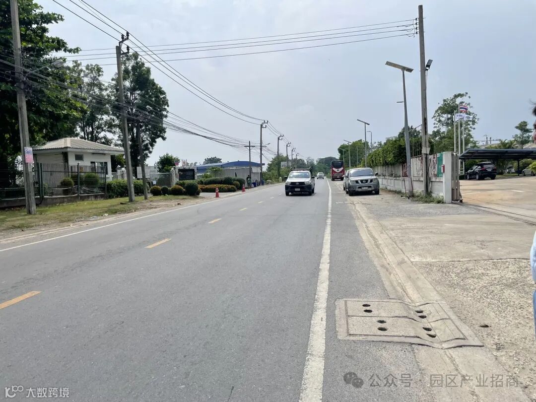 位于泰国EEC东部经济走廊的核心位置,交通上该工厂紧挨曼谷往东重要交通主干道BangNa Tart 大道及高架高速路; 工厂门前道路为双向两车道,宽12米;
