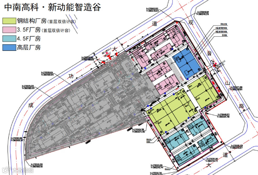 项目由中国产业园开发及运营龙头企业——中南高科开发建设,项目总占地111亩,总建约12万㎡;项目共28栋厂房、1栋企业服务中心。产品主要为稀缺钢结构/3.5层/4.5层(带院子)/8层框架厂房,独栋、双拼、三拼及多层等产品,面积涵盖1000-10000㎡不等,亦可专属定制。
