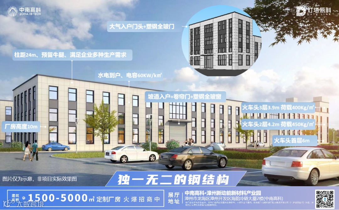 中南高科·新动能智造谷项目作为省市重点项目,是中南高科目前规格最高的标杆项目,紧跟漳州开发区新能源产业发展方向,重点招引新能源汽车产业上下游企业及相关高端装备制造业。该项目总建筑面积近12万㎡,共28栋厂房、一栋企业服务中心以及三栋配套用房,厂房分为钢结构、独栋/双拼、分层等多种形态,共分两期建设,旨在打造集生产、办公、研发及生活配套于一体的创新型综合产业园区。