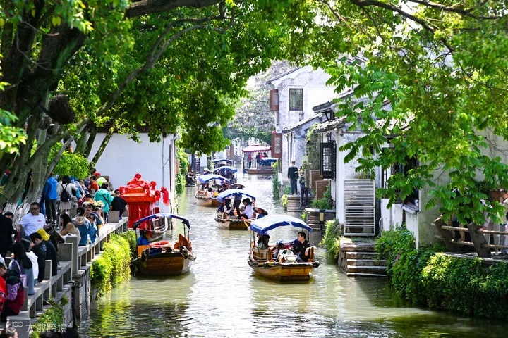 游客在昆山周庄古镇景区内休闲游玩,乐享假期(5月1日摄)。(昆山市融媒体中心供图)