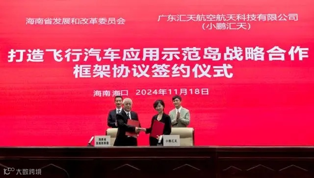此前,小鹏汇天与海南羽嘉通用航空服务有限责任公司就羽嘉通用向小鹏汇天采购100台“陆地航母”飞行汽车签署预订协议,并就合作建设飞行汽车营地、打造“低空+文旅”融合应用场景示范等事宜签署了合作协议。