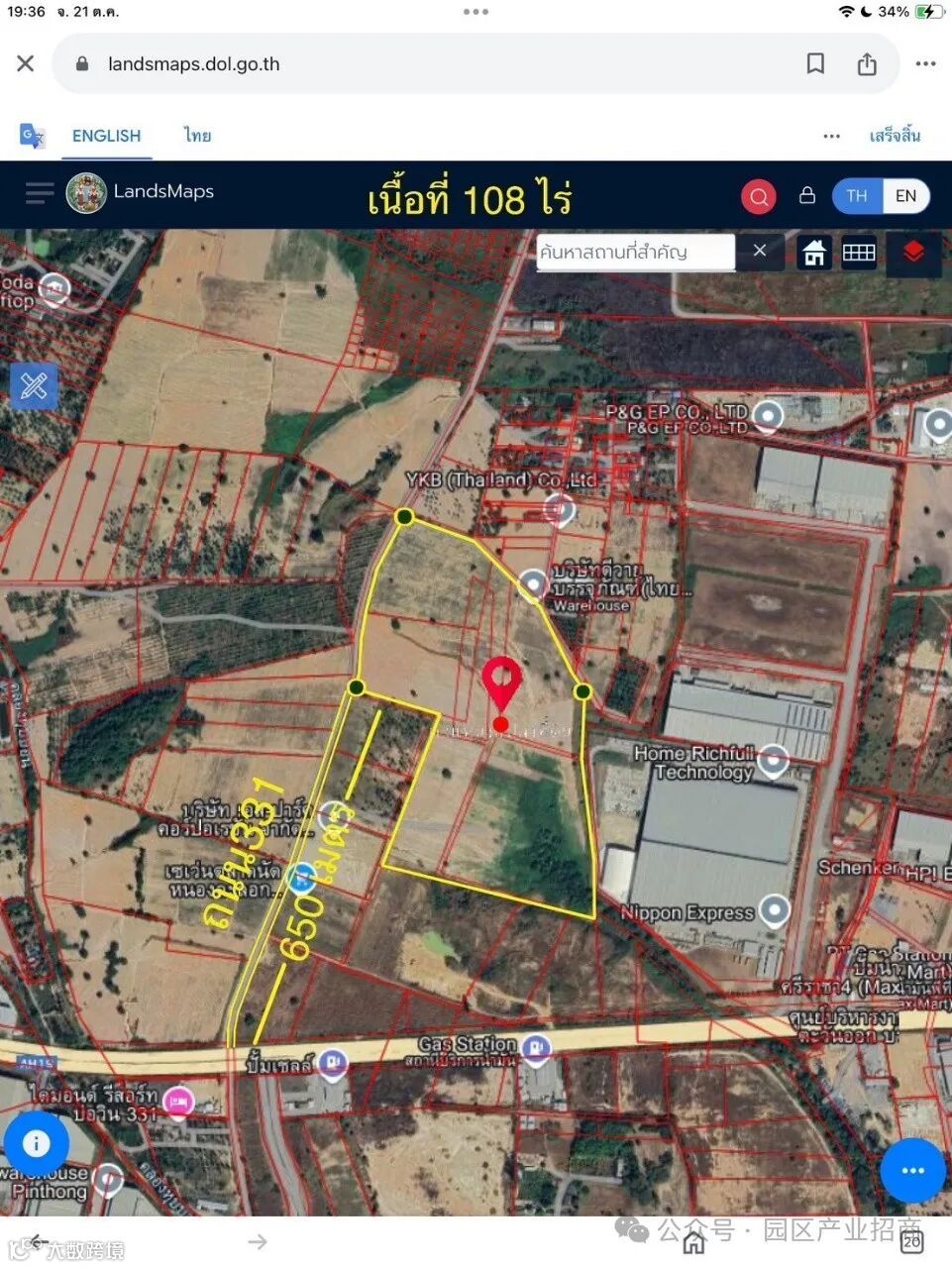 泰国春武里是拉差Bowin区108莱紫色土地出售,紧靠331主干道