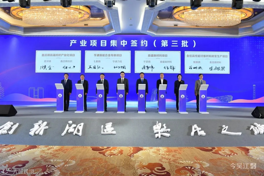 活动上,吴江高新区(盛泽镇)签约了国家先进功能纤维创新中心高性能纤维及复材基地、汉成功能性薄膜、非遗宋锦智慧工厂等16个重点项目,总投资70.85亿元,涉及高端纺织、新材料、智能制造、电子商务等多个领域。
