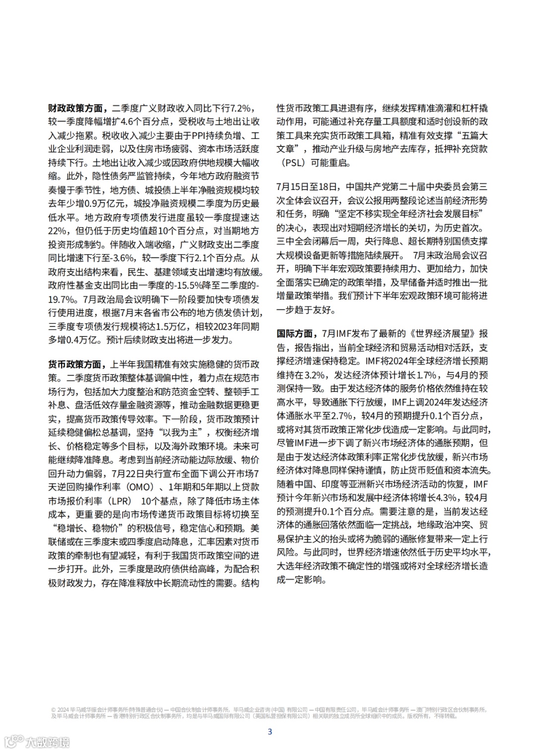 【特别声明】本文为毕马威发布的《2024年第三季度中国经济观察》,如需转载或引用请注明上述版权信息。文中相关插图已标注来源单位,版权完全归相关单位以及原作者所有;未标注的插图为本公众号绘制或来源于网络公开资料,如涉及侵权,请联系我们处理(541244349@qq.com)。此外,本文仅供研究参考用,在任何情况下,文中的任何信息和结论均不构成对任何个人的投资与决策建议。