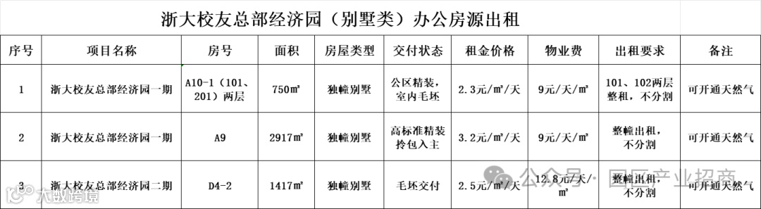 浙江大学校友总部经济园一期、二期别墅类办公房源出租