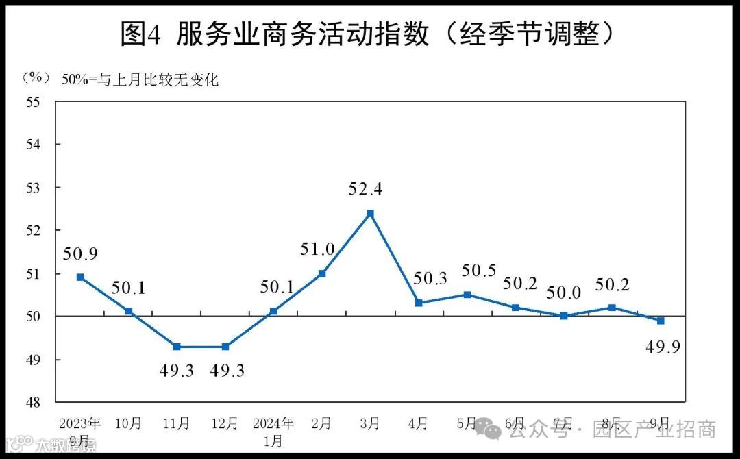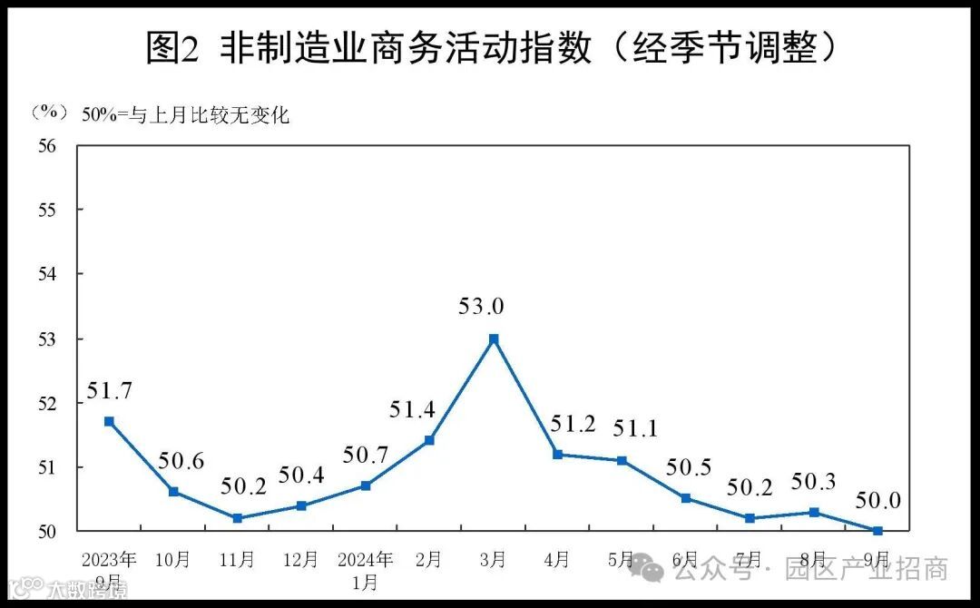 9月份,非制造业商务活动指数为50.0%,比上月下降0.3个百分点,非制造业景气水平小幅回落。