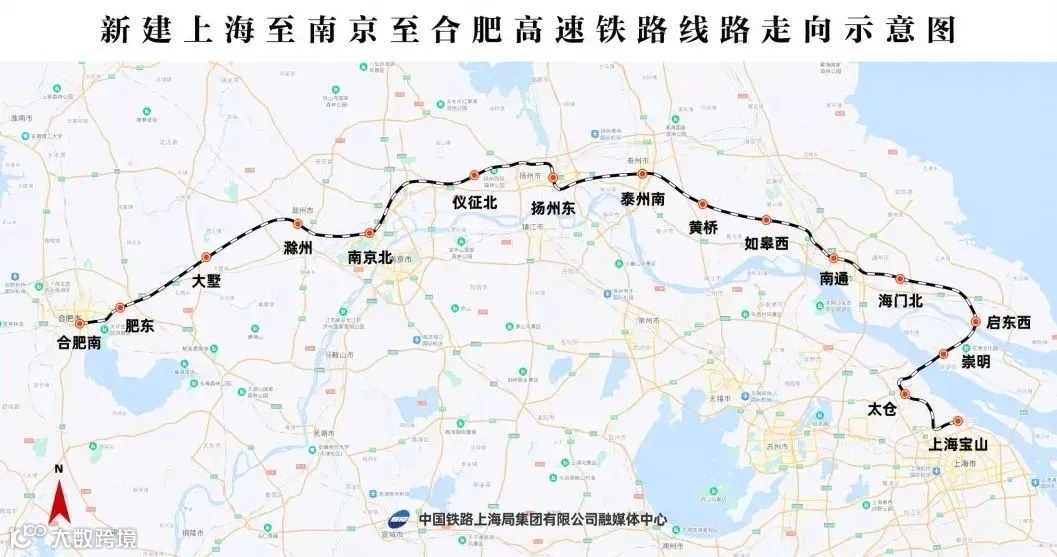 上海至南京至合肥高铁是沪渝蓉高铁的东段线路、国家“八纵八横”高速铁路网沿江高铁通道的重要组成部分,承担沿江通道主要路网客流、沿海及京沪通道部分直通上海客流的运输。该项目建成后,在上海大都市圈、南京都市圈和合肥都市圈间建起一条快速新通道,对于优化沿长江地区铁路网布局、服务长江经济带协同发展、推动长三角高质量一体化发展等具有重要意义。