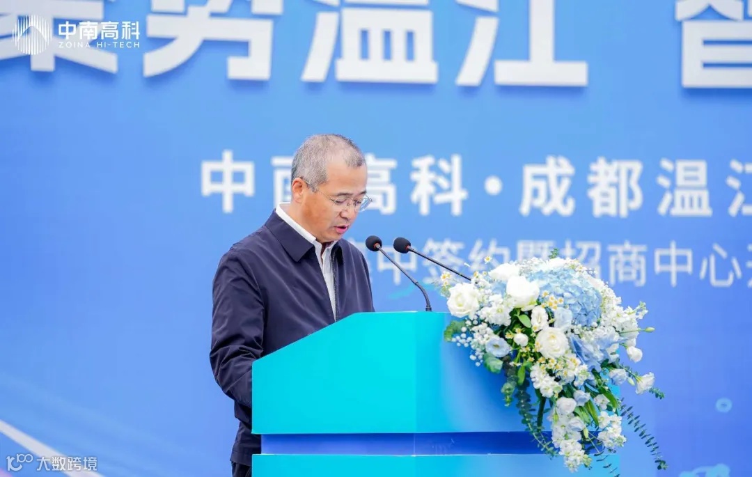 受区委书记马烈红委托,温江区政府副区长陆大东在致辞中说,当前,温江正加快构建“3+6”现代化产业体系,打造医药健康、绿色食品、现代都市农业3个具有核心竞争力和区域影响力的地标产业,培育装备制造、印务轻纺、文体旅游、电子信息、现代商务、数字经济等6个具有强劲支撑、广阔前景的重点产业和未来产业。中南高科·成都温江智造云谷项目的落地,为温江区注入了新活力,将有力推动温江区智能制造产业的集聚发展和产业升级。