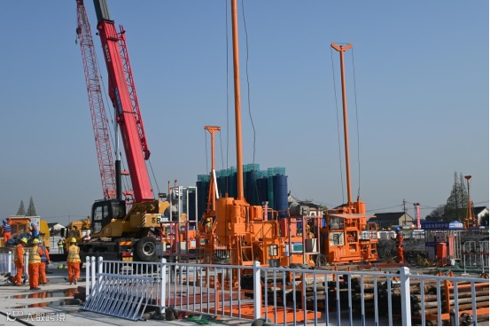 海太长江隧道江南接收工作井超高压大流量旋喷桩与高压旋喷桩施工完成