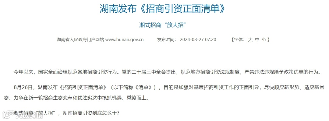 其实,最近很多地方政府都在密集出台全新的招商引资政策,比如湖南省刚刚发布的《招商引资正面清单》就刷了屏。