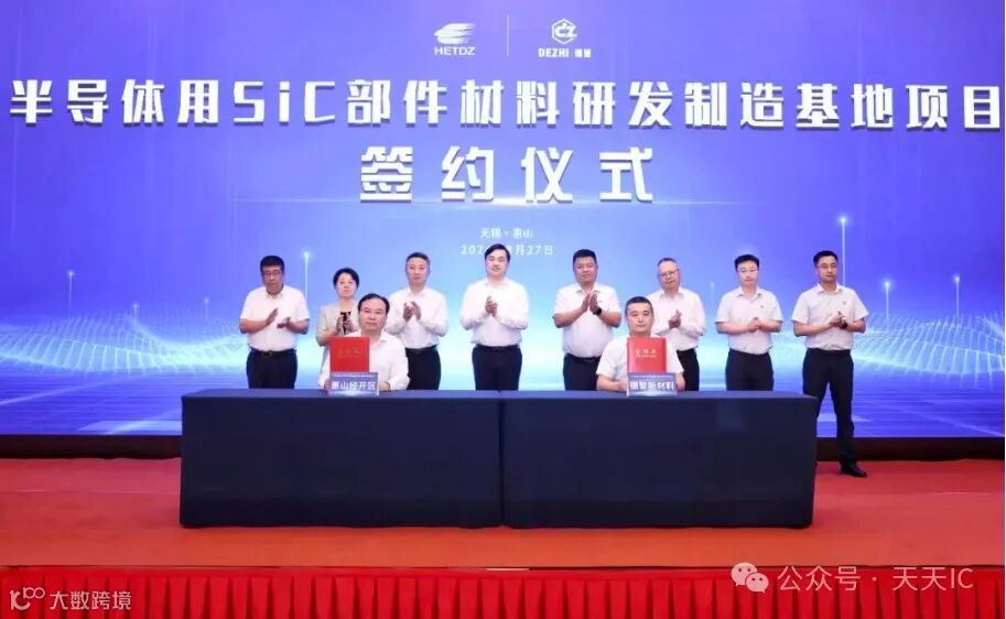 据无锡惠山发布消息,8月27日,半导体用SiC部件材料研发制造基地项目落户惠山经开区。湖南德智新材料有限公司董事长柴攀等项目方负责人参加活动。