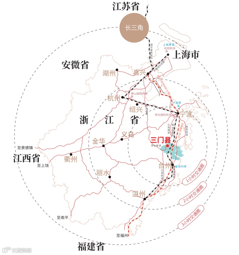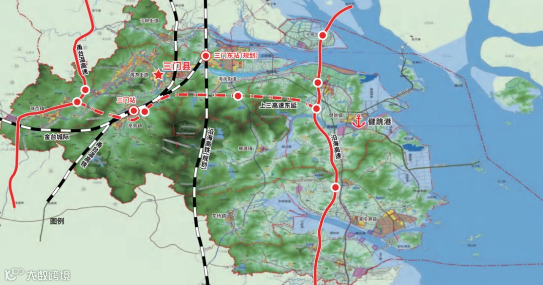 ·甬台温高铁、金台城际穿境而过,规划新建的沿海高铁可将三门至上海通行时间缩短为1.5小时;