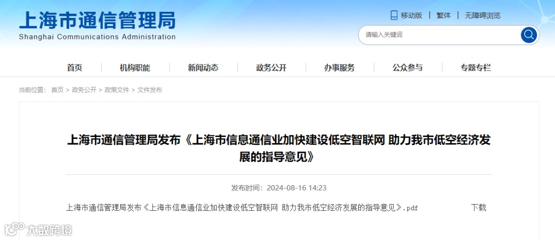 8月16日,上海市通信管理局网站发布《上海市信息通信业加快建设低空智联网 助力我市低空经济发展的指导意见》。
