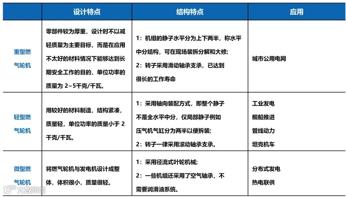 燃气轮机根据结构形式划分,可以分为重型燃气轮机、轻型燃气轮机以及微型燃气轮机。