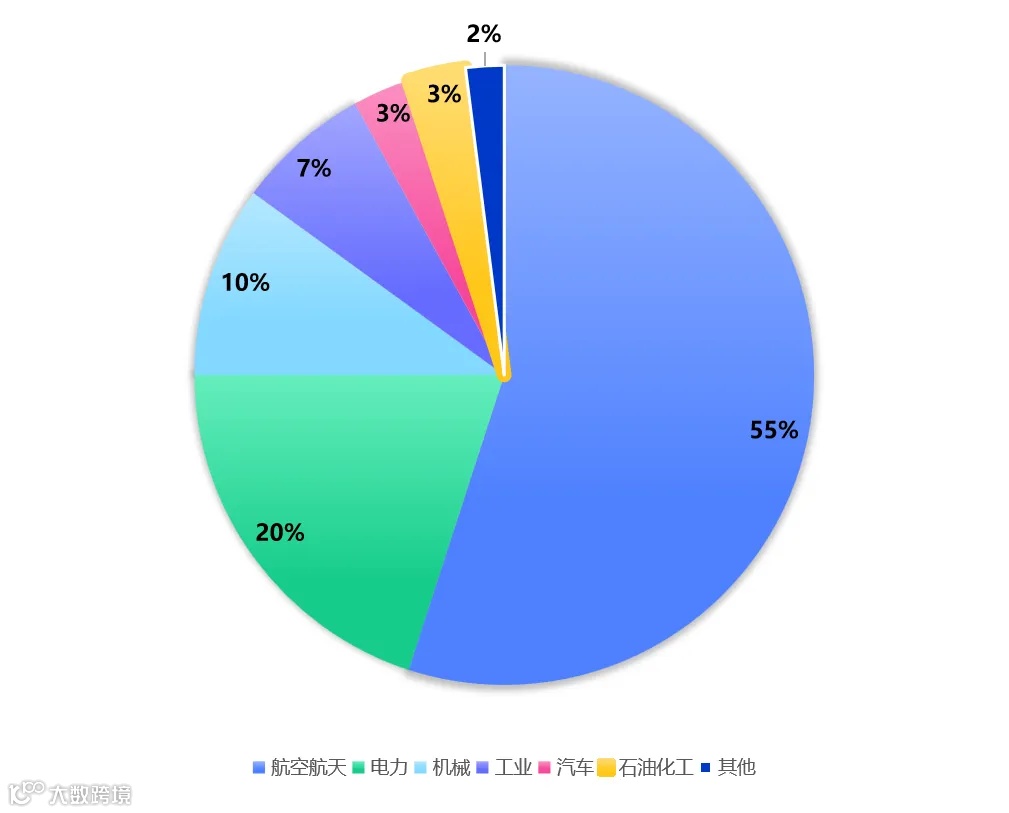 图:高温合金在各领域的分布图;来源:中商情报网、中国产业信息网