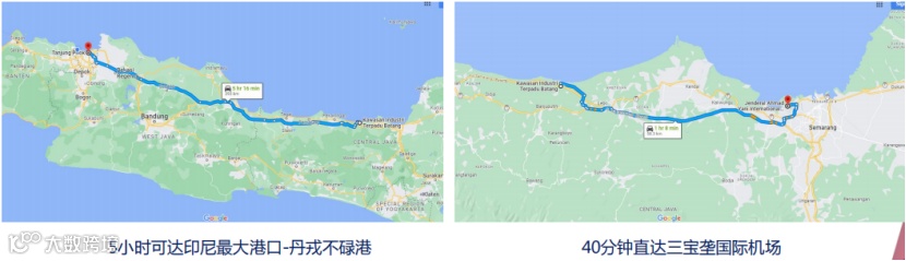 • 紧邻高速公路,距雅加达市中心387公里;5小时内可达苏加诺哈达机场和印尼最大港口丹戎不碌港;