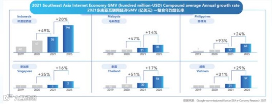 • 印尼互联网经济增速迅猛,2019年规模为400亿美元,到2025年有望达到1300亿美元;