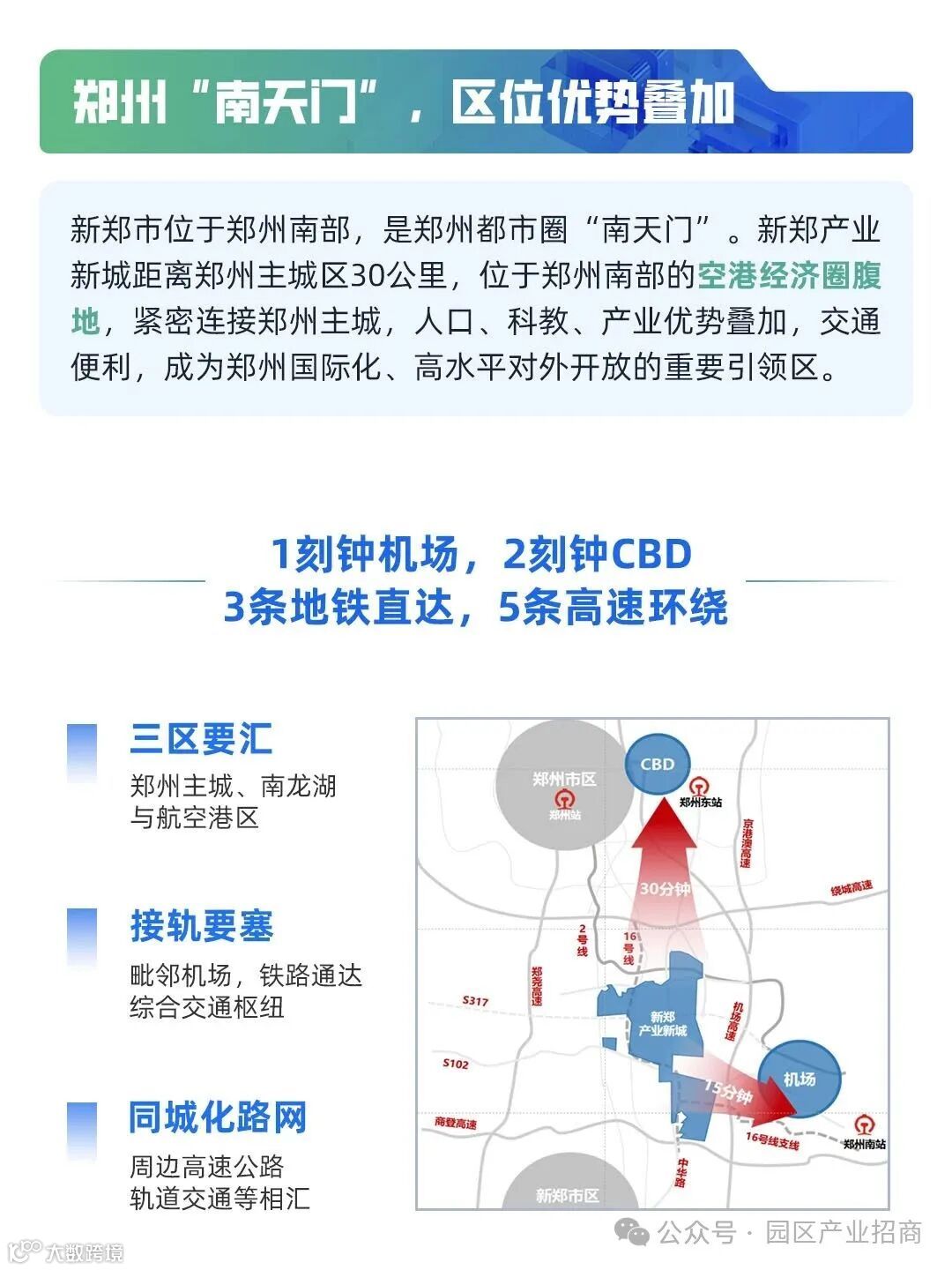 新郑产业新城位于郑州南部的空港经济圈腹地,紧密连接郑州主城,人口、科教、产业优势叠加,交通便利,成为郑州国际化、高水平对外开放的重要引领区。
