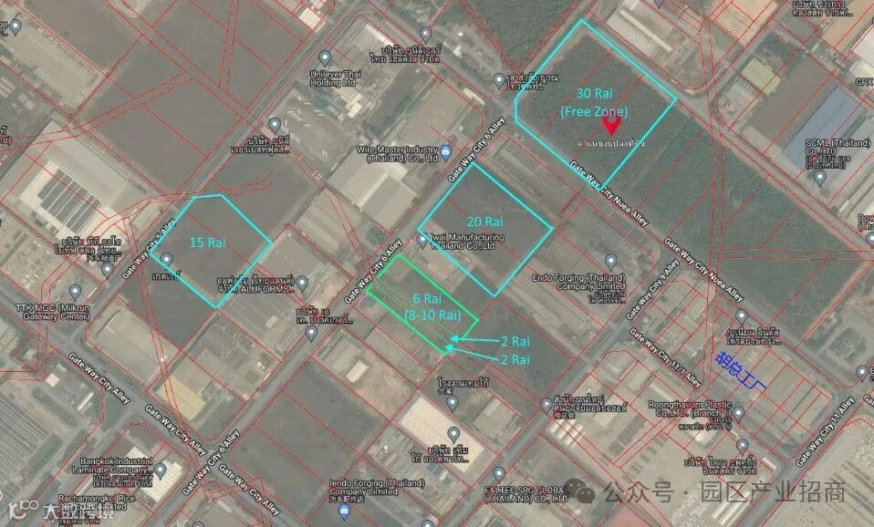 泰国北柳府IEAT园区多块土地出售;占地面积10莱~30莱