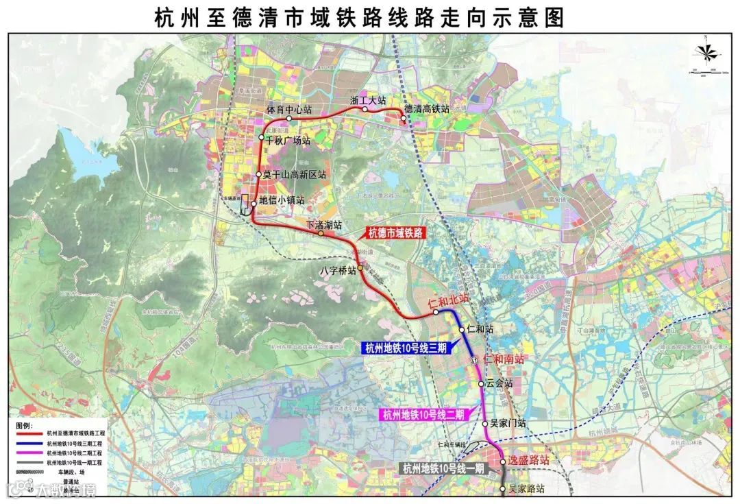 自余杭区仁和北站至德清高铁站,全长25.6公里,设计时速120公里,线路分高架、地下两种方式敷设,全线设9座车站(仁和北站、八字桥站、下渚湖站、地信小镇站、莫干山高新区站、千秋广场站、体育中心站、浙工大站、德清高铁站)。