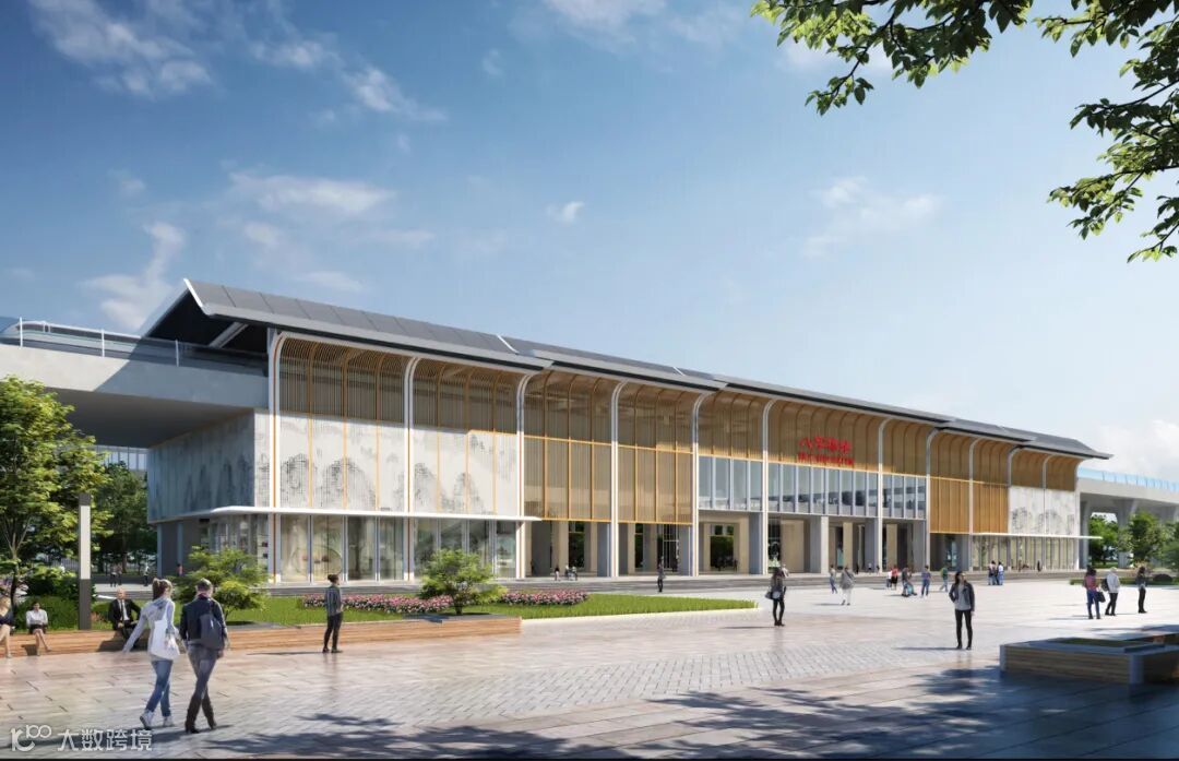 总建筑面积10667.29平方米,建筑层数为地上三层,包括车站主体、附属站房、天桥等,以“折纸朱鹮”为主题,整体造型体现交通建筑的动感。