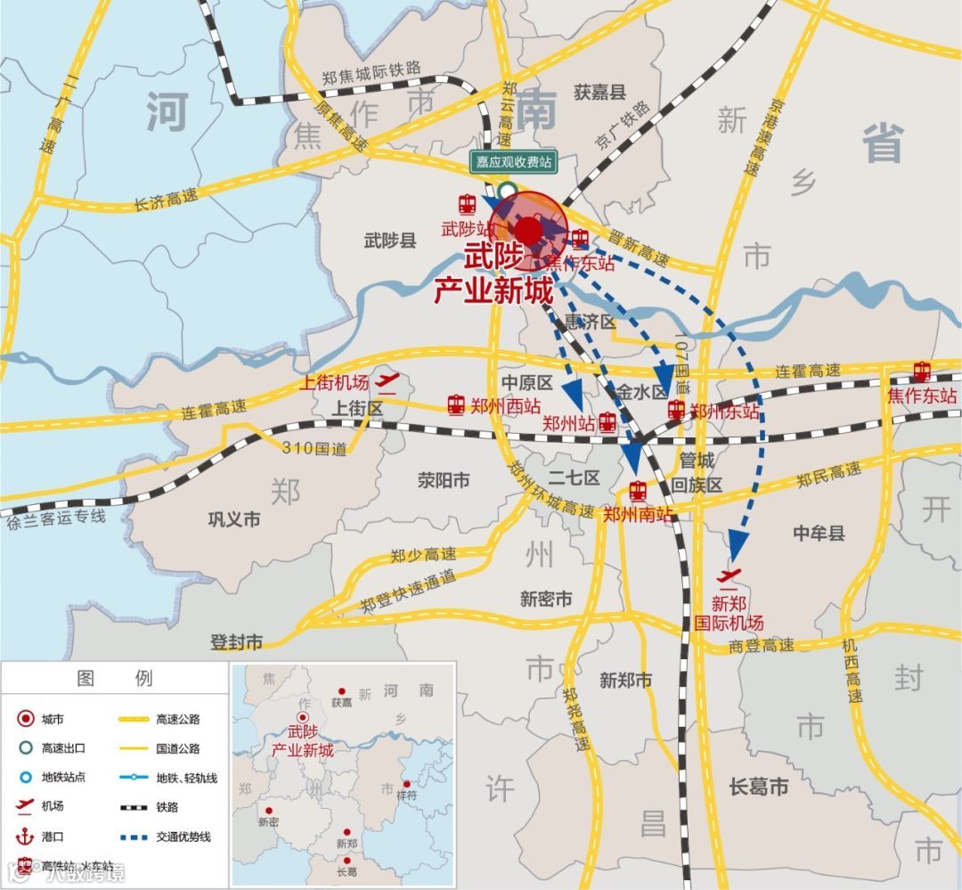 武陟产业新城地处黄河北岸,与郑州仅一河之隔,是大郑州“一刻钟经济圈”的重要组成部分。多条高速和铁路贯穿全境,便捷的交通利于运输和配送。